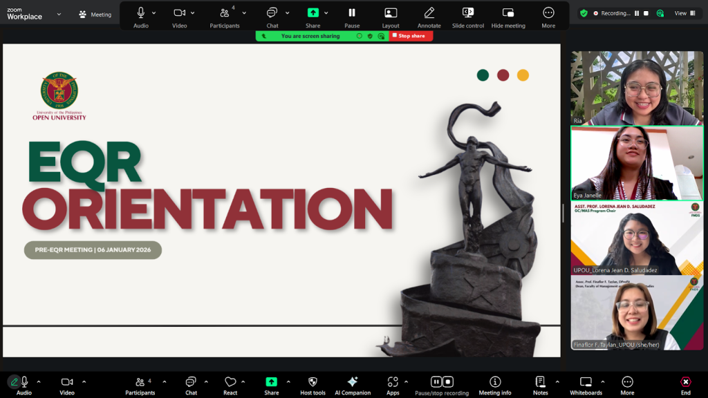- assisting the university in implementing QA initiatives through capacity-building activities and meetings, faculty and CU-level, aligned with UP System’s QA thrust;